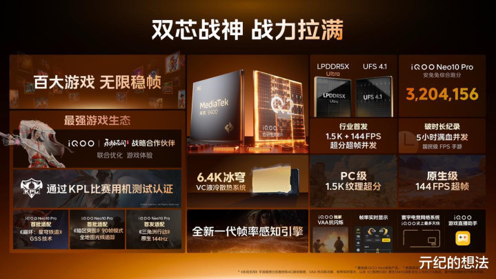 这是一款频繁被推荐的机型,原因也很简单,那就是体验优秀价格低,当主力机和游戏机都是杠杠的。该机搭载天玑9400满血三件套,游戏方面由自研电竞芯片Q2负责,还有定制高振感X轴马达和封闭式立体双扬,整机通过了KPL比赛用机测试认证。