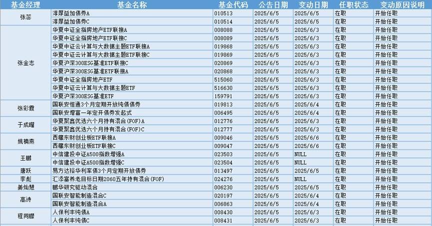 新基金经理上任方面,西藏东财基金姚楠燕现任基金资产总规模为42.04亿元,管理过的基金都为指数型基金,任职期间回报最高的产品是东财北证50A(020828),为指数型基金,在任职的0年又258天时间内获得109.97%的回报,至今仍在管理该基金。新上任西藏东财创业板ETF联接A、西藏东财创业板ETF联接C这两只基金产品的基金经理。