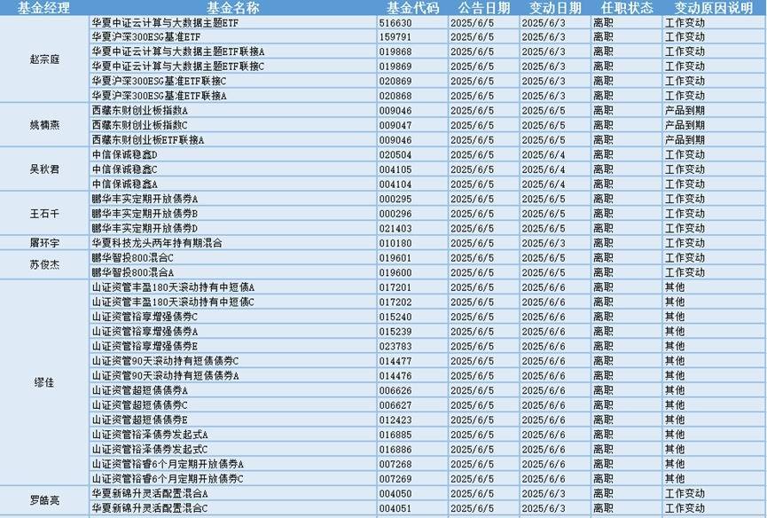 根据巨灵统计的数据显示,近30天(5.6-6.5)共有540只基金产品的基金经理发生离职变动。其中今天(6.5)有40只基金产品发布基金经理离职公告炒股10倍杠杆软件,从变动原因上来看,有9位基金经理是由于工作变动而从管理的23只基金产品中离职。有1位基金经理是由于产品到期而从管理的3只基金产品中离职。有1位基金经理是由于其他而从管理的14只基金产品中离职。